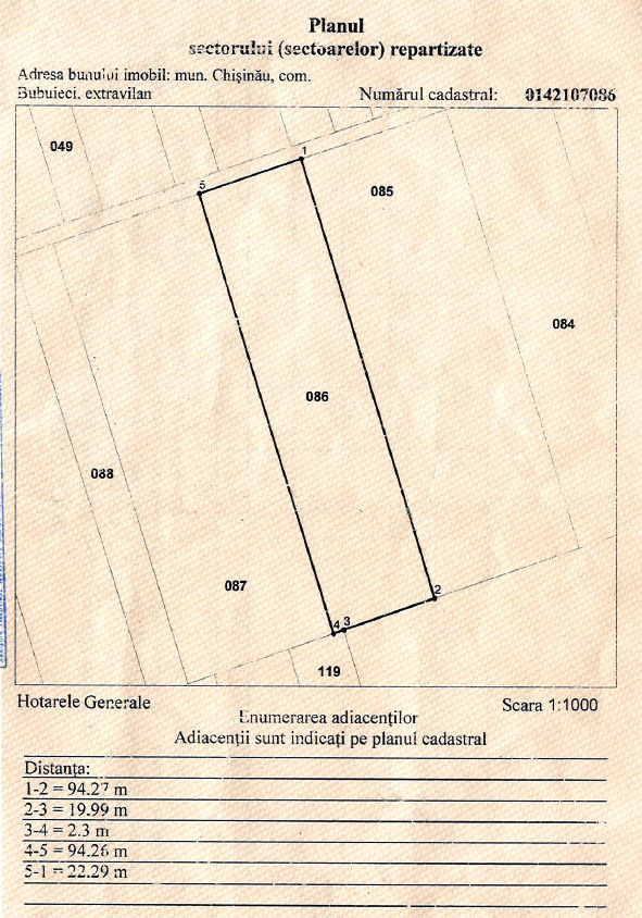 Vindem teren cu modul de folosință Grădină — 21 ari (22×94 m), mun. Chișinău, com. Bubuieci 🌿