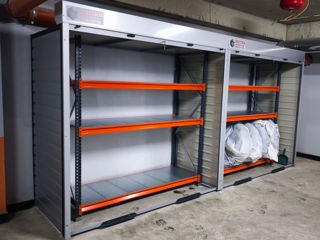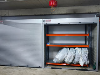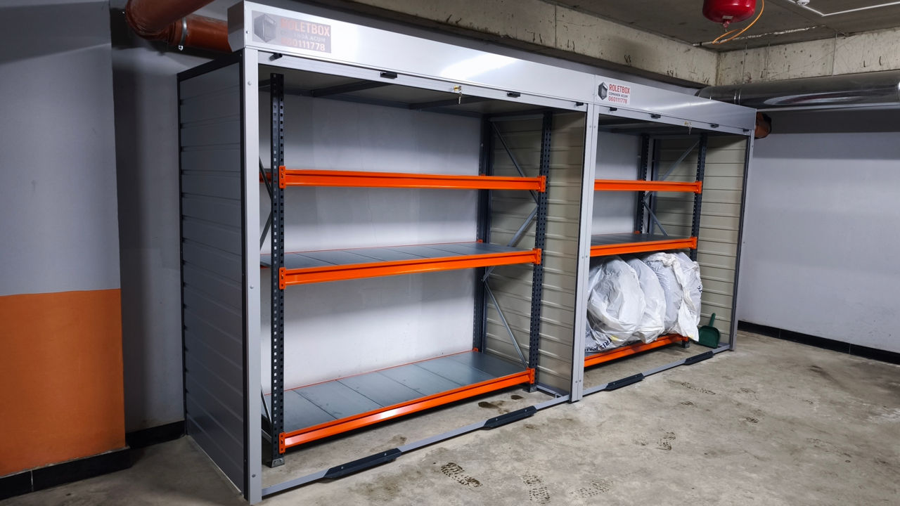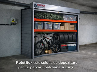 Металлический шкаф RoletBox с ролетой и стеллажами – идеально подходит для парковки, балкона, двора.