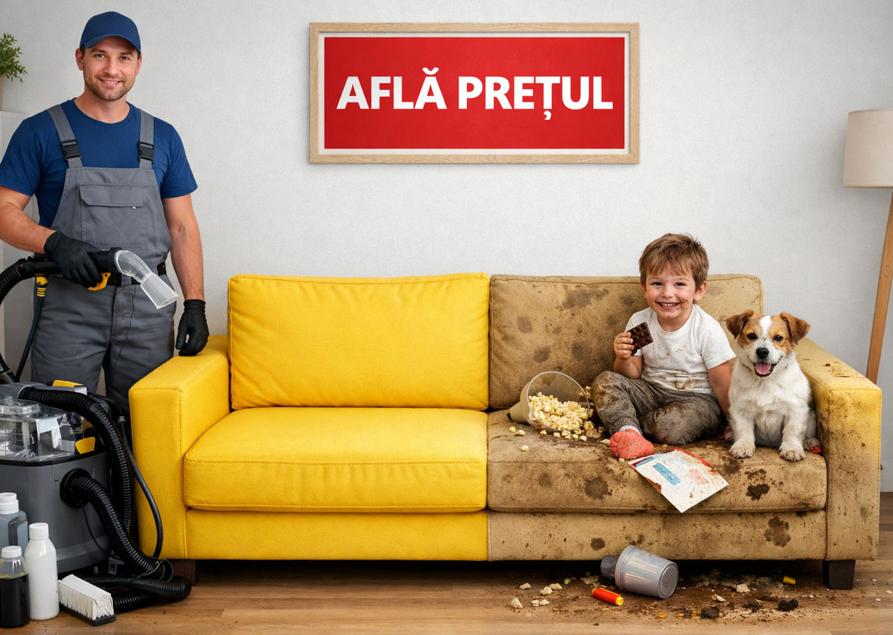 În doar 2 ore, vă ajutăm să scăpați de pete, mirosuri neplăcute și praf, la un preț fix garantat.