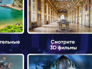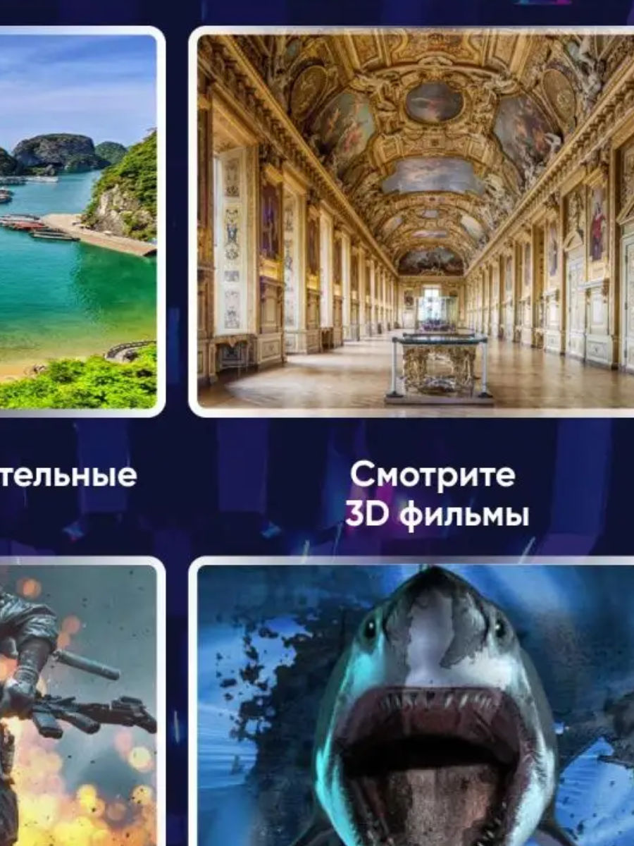 Sistemul de lentile din interiorul ochelarilor transformă ecranul smartphone-ului într-o realitate 3D imersivă, permițându-vă să vă bucurați de filme, fotografii și videoclipuri sferice, precum și să jucați jocuri 3D interesante pentru platformele IOS și Android.