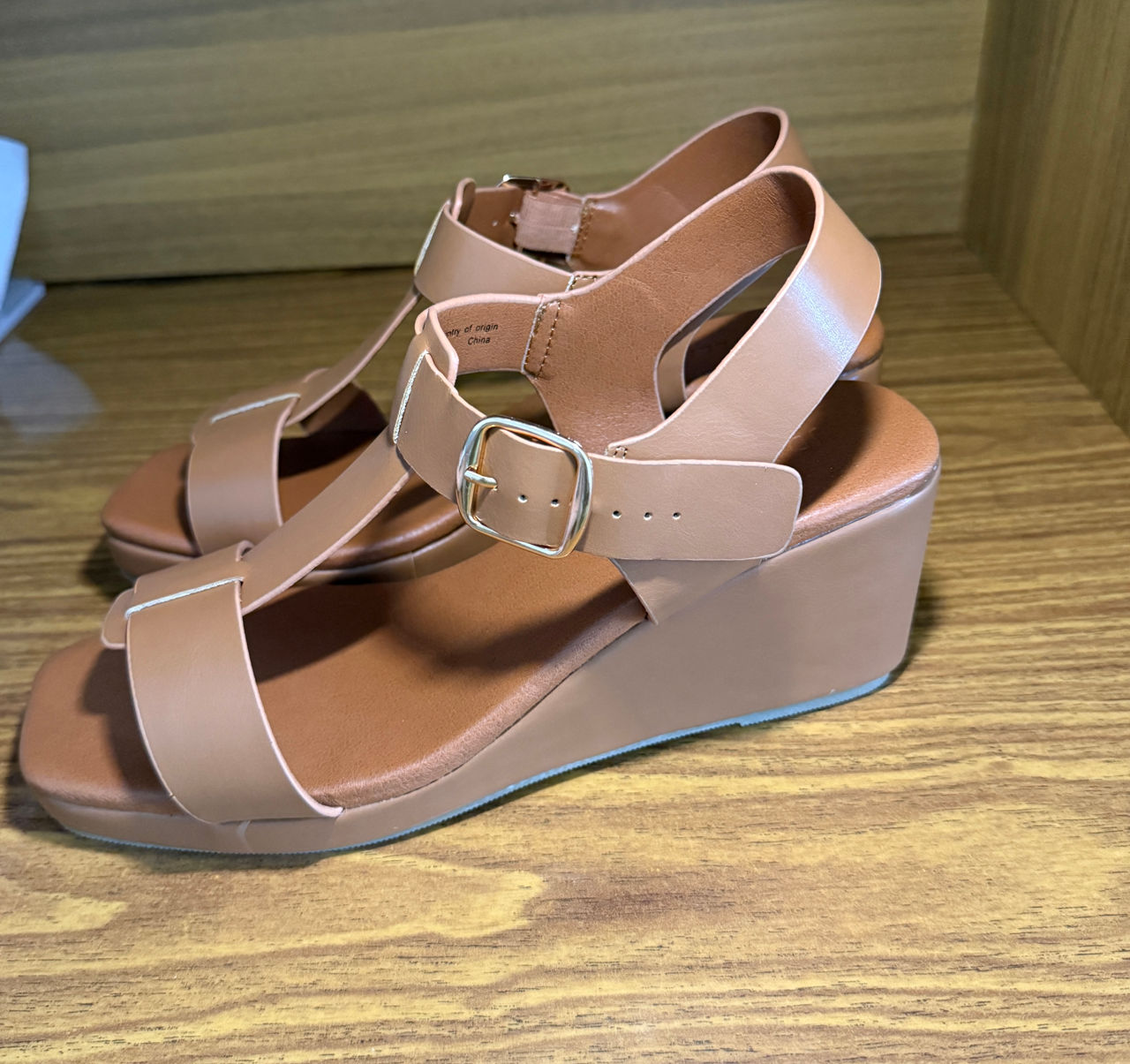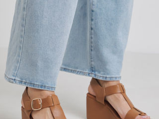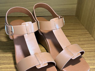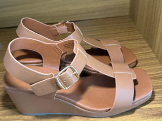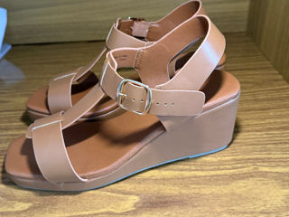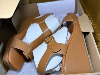 Sandale cu platformă/pană elegante, culoarea camel/maro deschis Mărimea 39,5