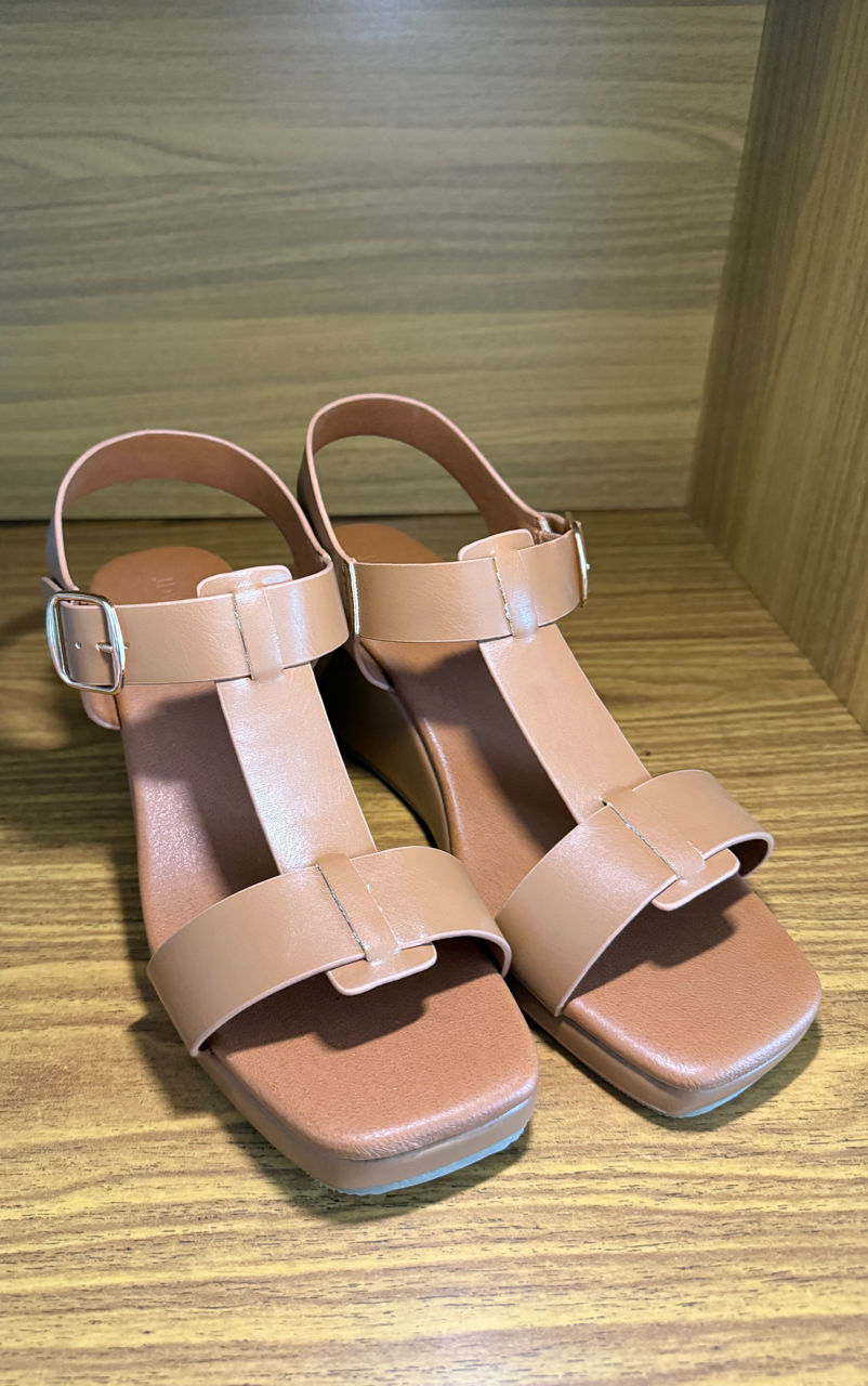 Sandale de damă moderne și confortabile, cu talpă tip pană/platformă. Culoarea camel/maro deschis este versatilă și ușor de asortat. Design cu barete, închidere cu cataramă reglabilă la gleznă pentru o potrivire sigură. Ideale pentru vară, plimbări sau evenimente casual-chic.