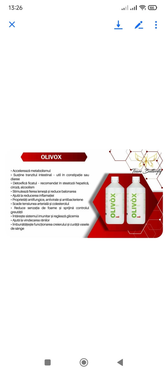 Folosește Olivox,că să ai un corp frumos Olivox pentru a te menține sănătos Suc natural care te ajuta să te menții mereu in forma,fără balonări ,constipații,kg in plus Să fii energic și plin de viața Măslin: metabolismul glucidelor și lipidelor; circulația normală a sângelui; regularitatea tensiunii arteriale; antioxidant Anghinare: funcție digestivă; funcția hepatică; eliminarea gazelor intestinale; funcțiile de purificare a organismului; metabolismul lipidic; antioxidant Tamarind: regularitatea tranzitului intestinal; volumul normal și consistența scaunului. Certificate Nichel test 25PF000690 Nichel test 25PF000557 Nichel test 25PF000508 Nichel test 25PF000444 Nichel test 25PF000380 Nichel test 25PF000359 Nichel test 25PF000298 Nichel test 25PF000246 Nichel test 25PF000164 Nichel test 25PF000117 Nichel test 25PF000094 Nichel test 25PF000050 Nichel test 25pf000004 Nichel test 24PF001056 Nichel test 24PF001042 Nichel test 24PF001004ki Nichel test 24PF000972 Nichel test 24PF000958 Nichel test 24PF000905