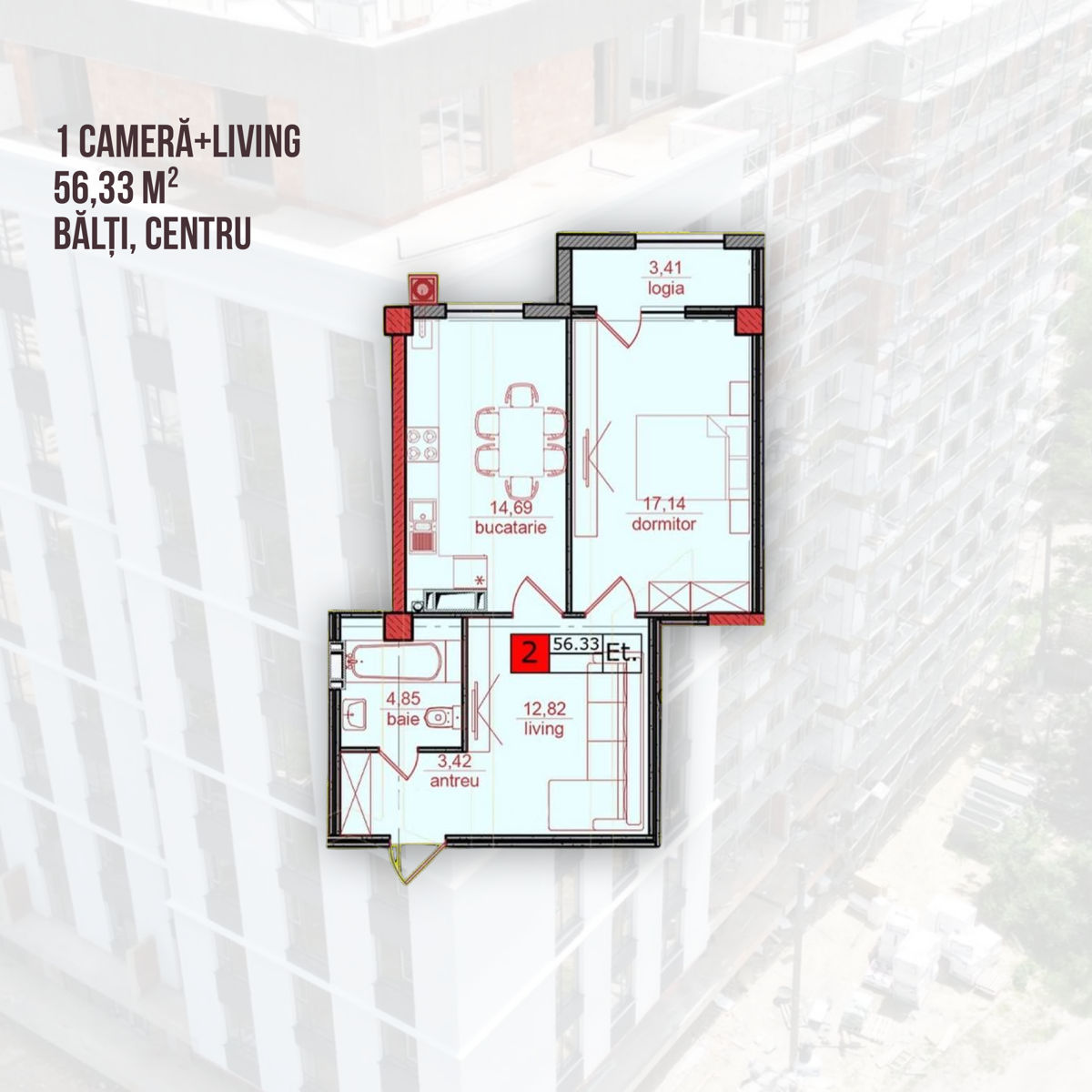 56 m², etaj 5/10 – 67.500 €