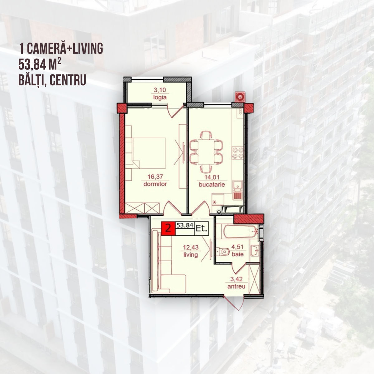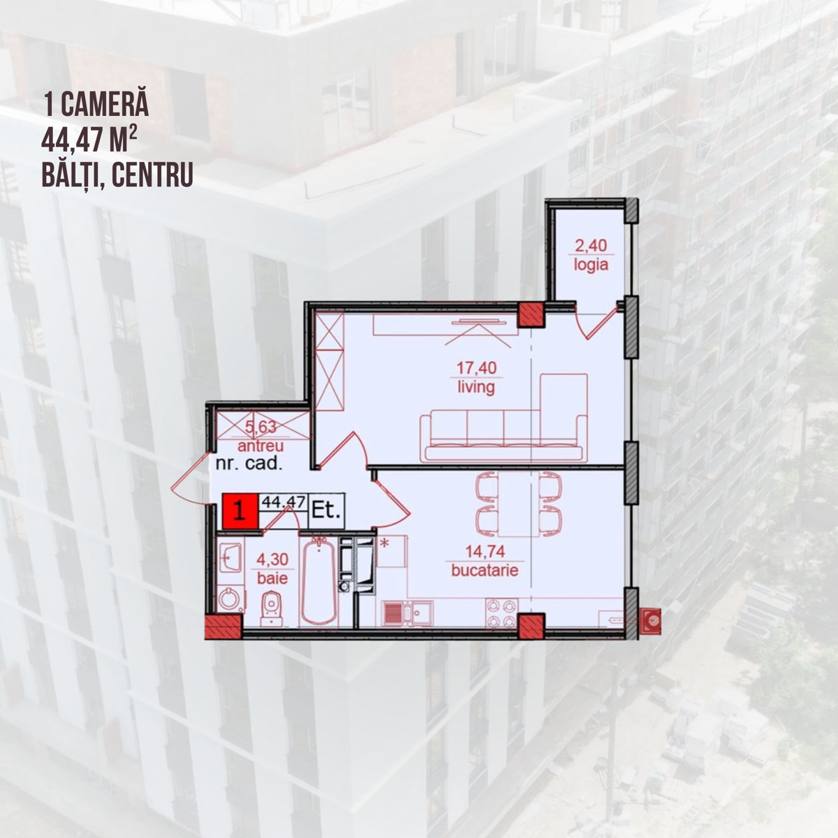 44 m², etaj 5/10 – 53.500 €