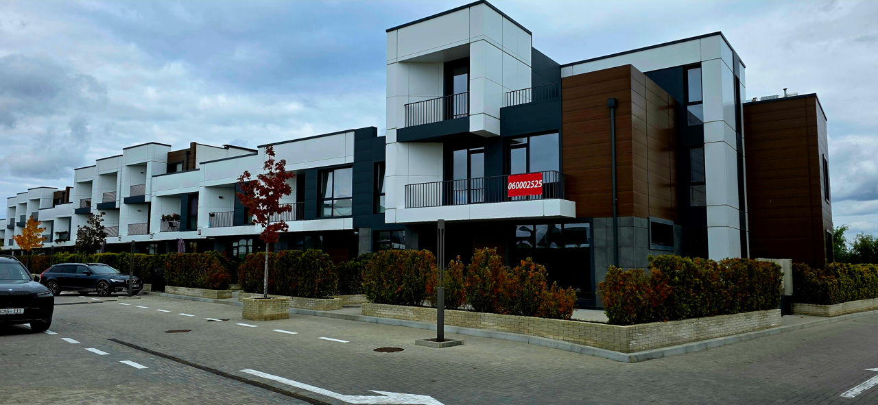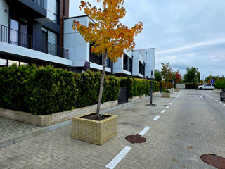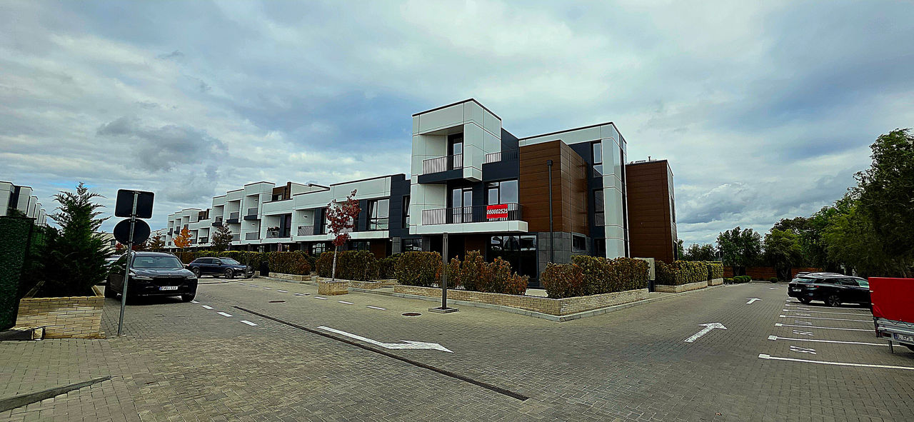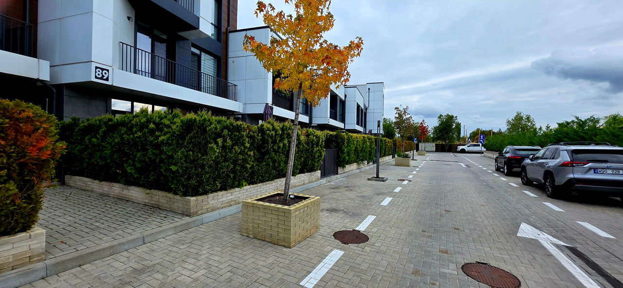 Собственный прилегающий двор 40м², терраса 20м², 3 балкона, 2 парковочных места, гостевая парковка.