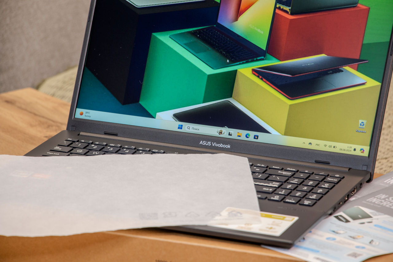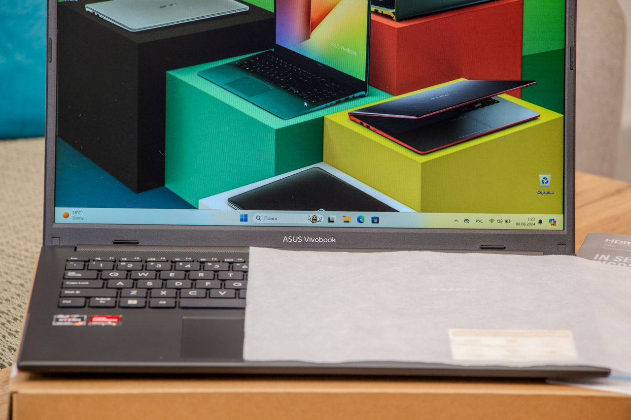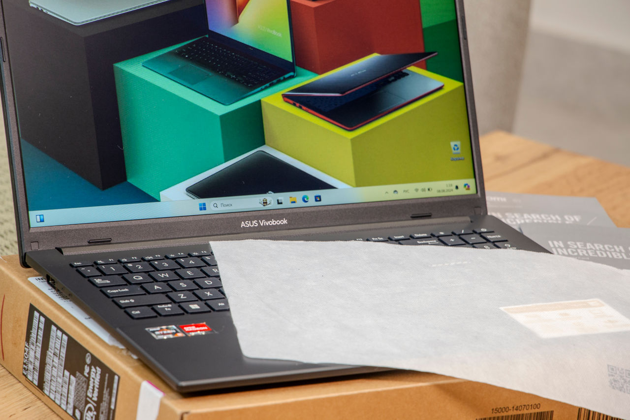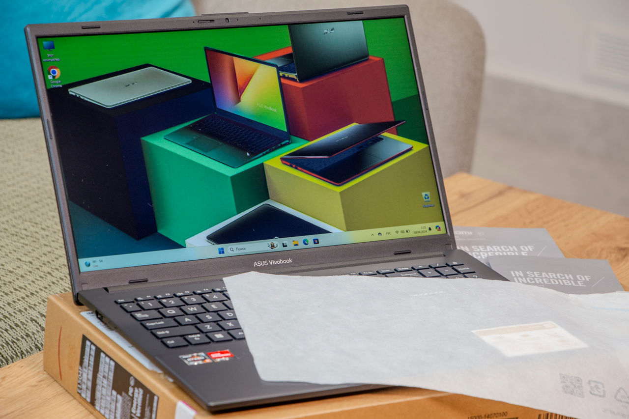 В комплекте ноутбук в коробке, документы и оригинальная зарядка.