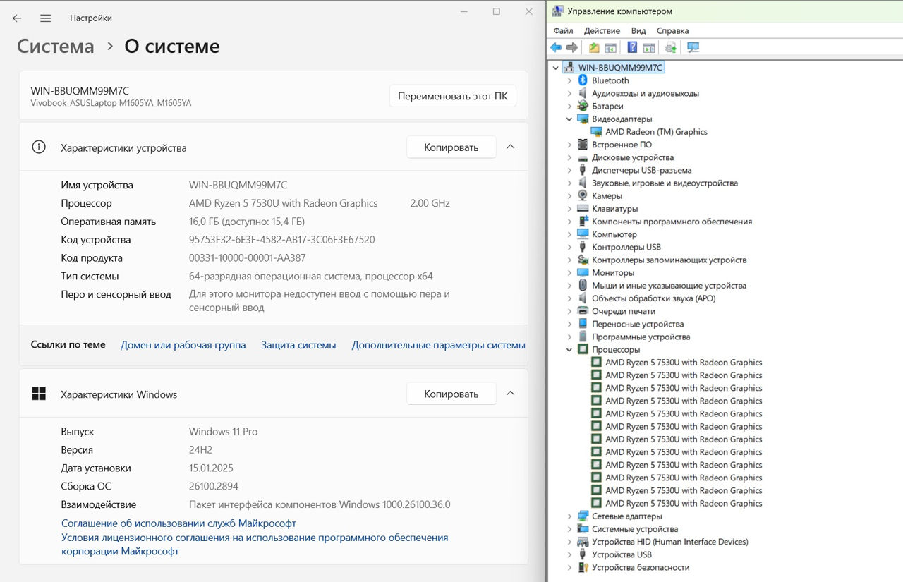 Процессор: AMD Ryzen 5 7430U, 12x4.3GHz in TurboBoost.