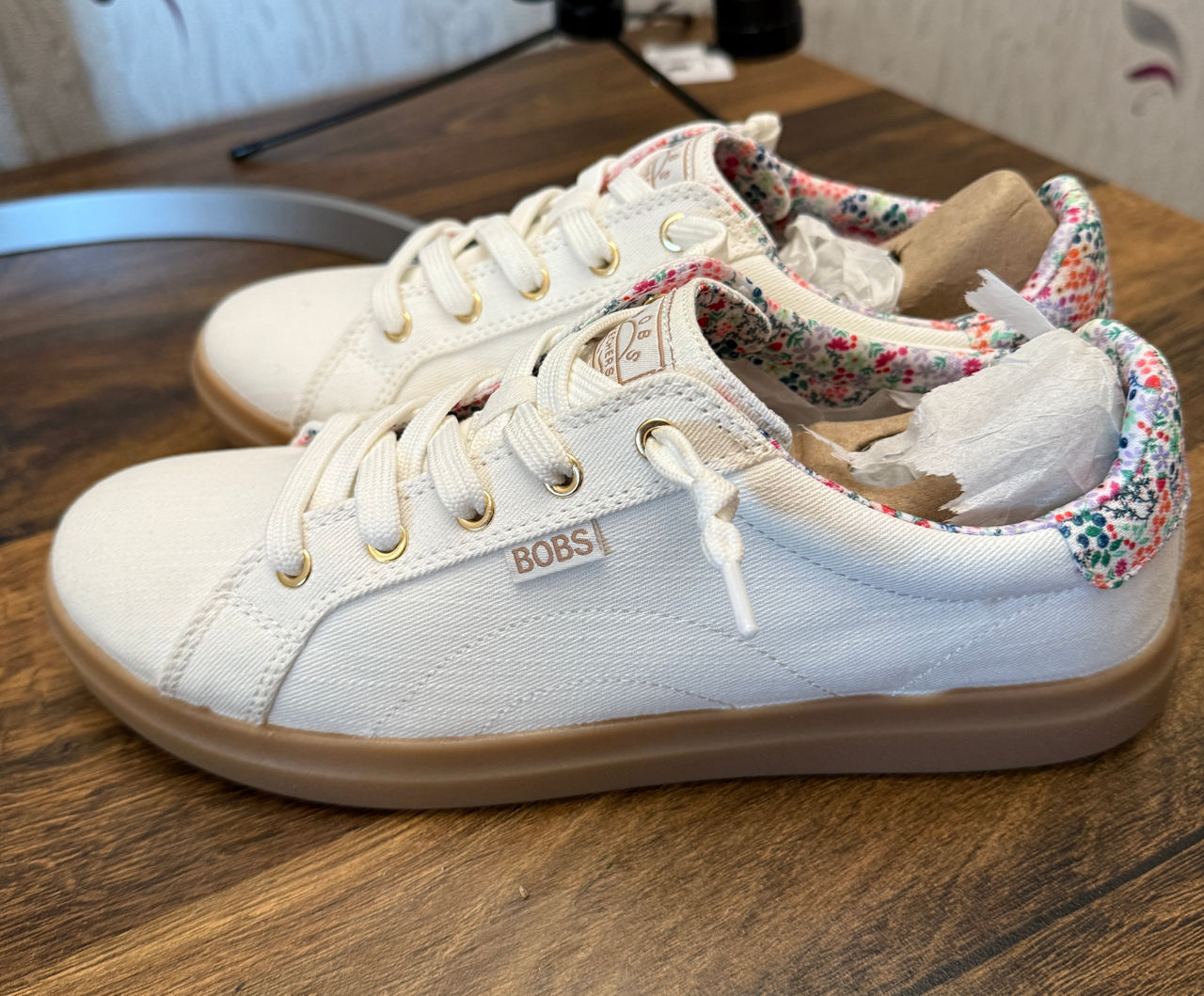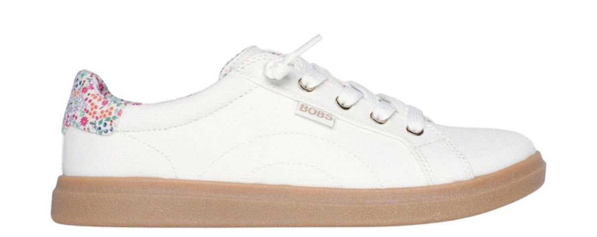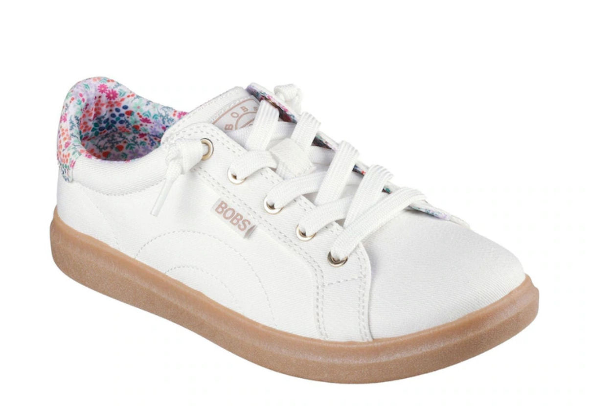 Culoare: Alb cu detalii florale colorate pe interior). Caracteristici: Model casual, confortabil, ideal pentru ținute de zi cu zi. Talpa este din cauciuc, iar materialul exterior este textil.