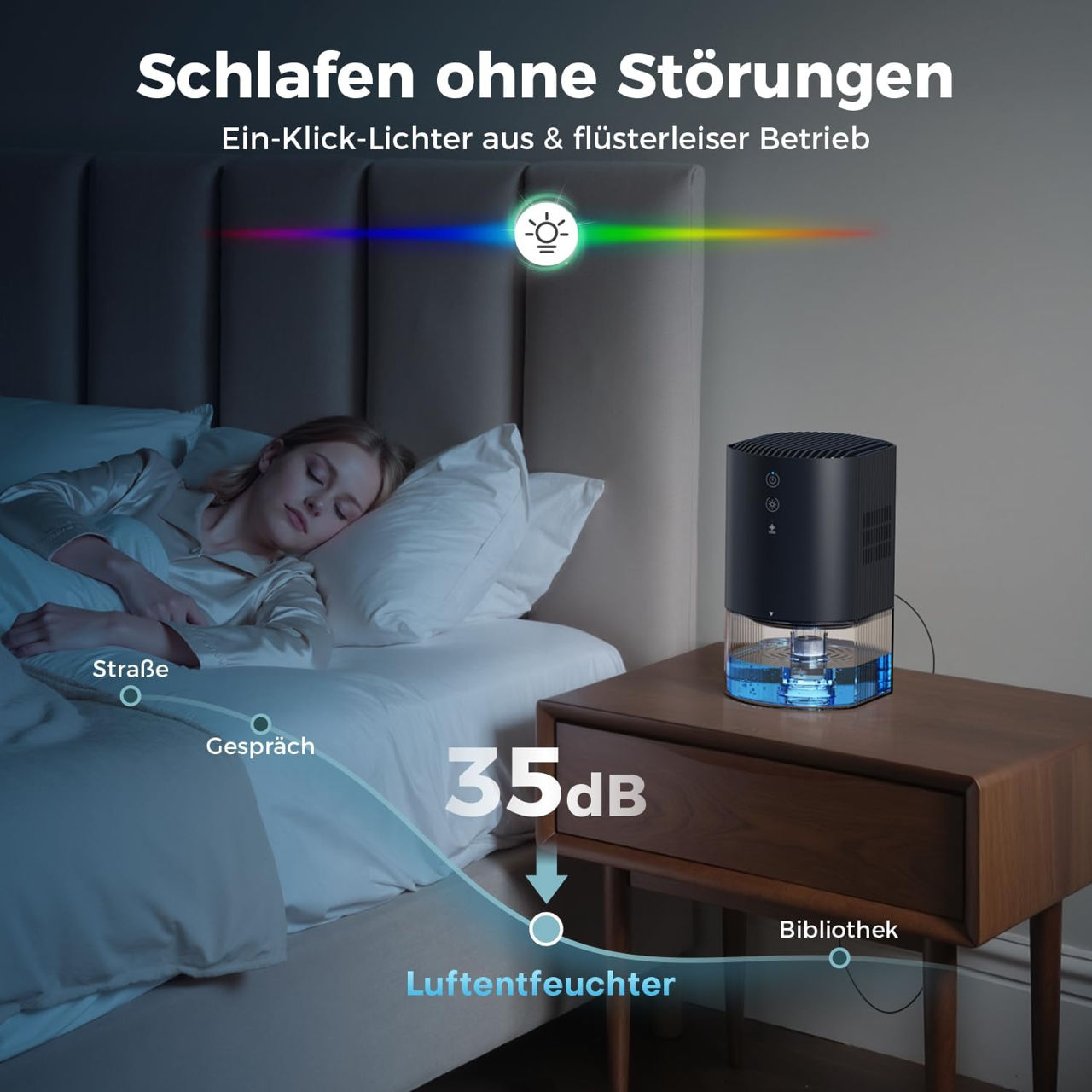 Dezumidificator 990 ml, Dezumidificator electric mic, Lumină în 7 culori, Oprire automată, Protecție la dezghețare, Dezumidificator pentru utilizare 24 de ore în casă, dulap, baie și bucătărie