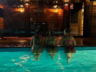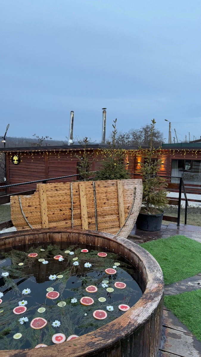 Бассейн, сауна и горячий чан на дровах (добавляем хвою, апельсины, лимоны для особенной атмосферы).