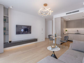 Unitatea este predată full-option, până la ultimul detaliu: mobilier custom, electrocasnice integrate, accesorii, decorațiuni, tacâmuri, veselă și tablouri – exact ca în prezentare.