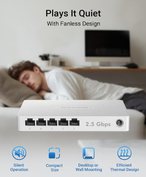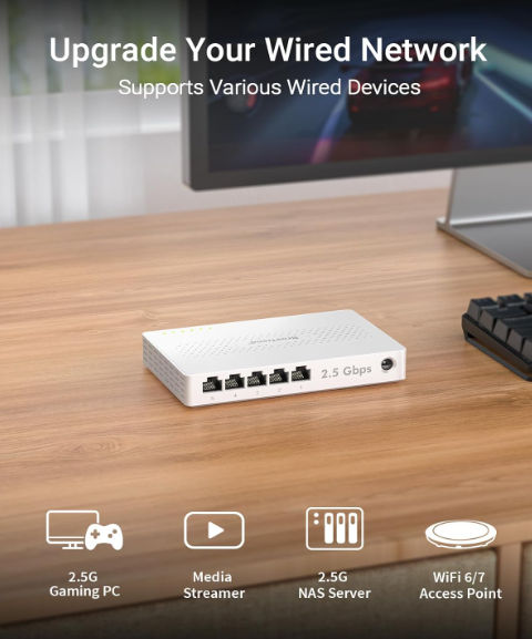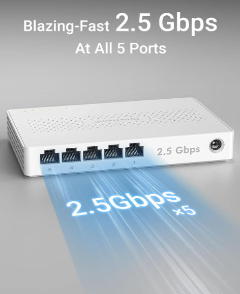 5 porturi 2.5G pentru PC-uri, console, NAS, router și alte dispozitive