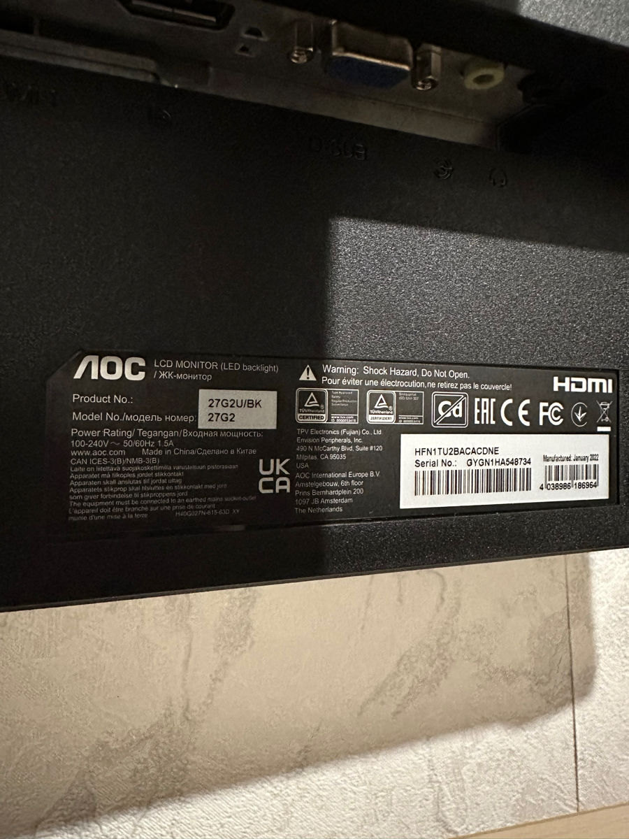 Monitor de gaming AOC 27G2 144Hz