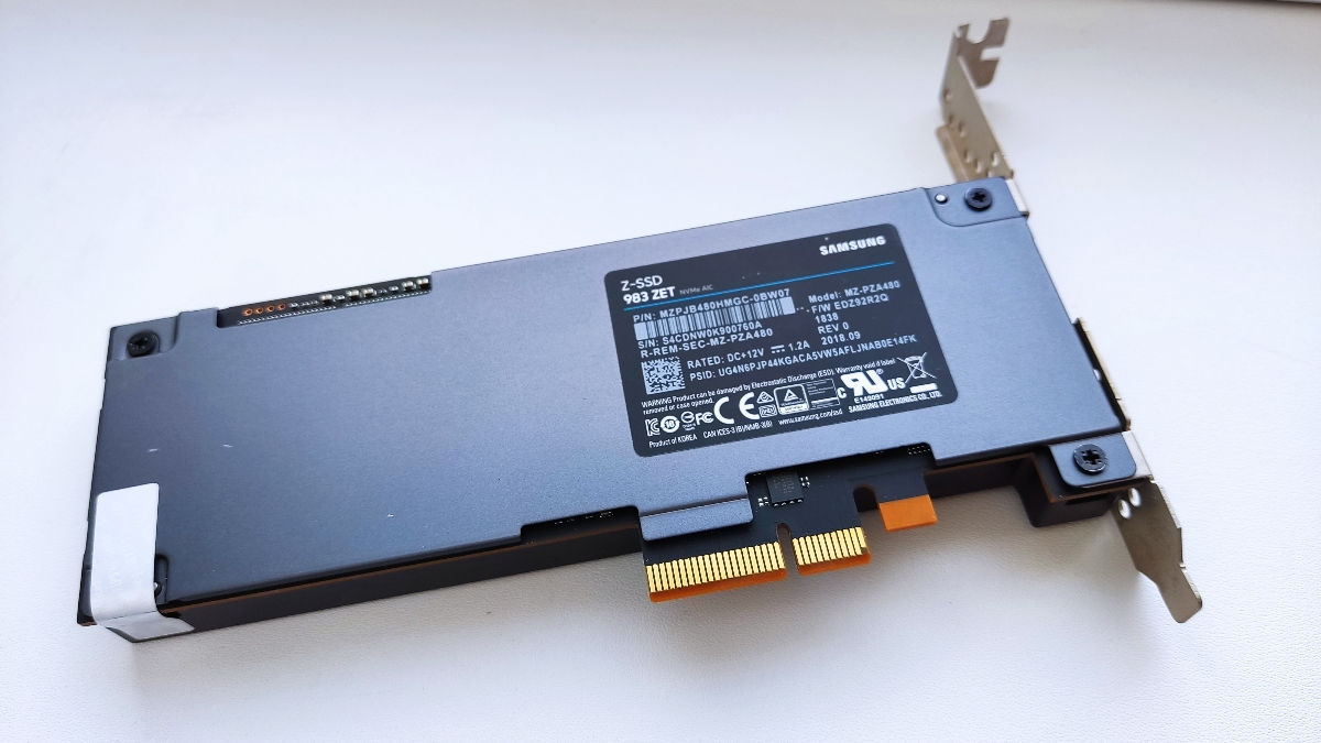 983 ZET AIC PCIe 3.0 x 4 NVMe SSD Samsung 480GB Sequential Read Speed Up to 3,400 MB/s Sequential Write Speed Up to 3,000 MB/s Random Read Speed Up to 750,000 IOPS Random Write Speed Up to 60,000 IOPS Warranty - 7.44 PBW Starea - 99,9% https://www.samsung.com/us/business/support/owners/product/983-zet-series-480gb/