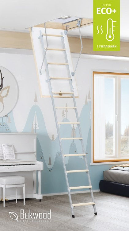 Scarile de mansarda din seria ECO+ sunt echipate cu usa de trapa cu izolatie tip sandwich: placă HDF de înaltă calitate de culoare albă și carcas din lemn cu material termoizolant. Izolație suplimentară a fost instalată sub forma unui sigiliu special în jurul perimetrului cutiei, care contribuie, de asemenea, la închiderea silențioasă și lină a capacului trapei. Accesorii de înaltă calitate galvanizate cu zinc pentru a proteja împotriva coroziunii și pentru a crește durata de viață. Pentru a asigura siguranța și fiabilitatea scărilor, se folosesc crestături speciale pentru a proteja împotriva alunecării, iar treptele și ghidajele sunt conectate cu o coadă de rândunică.