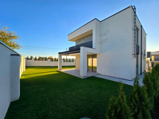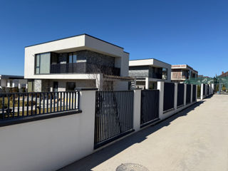 Vînd casă modernă, stil Hi-Tech, în 2 nivele amplasată într-o zonă liniștită și verde din com. Băcioi, str. Călătorilor. Proprietatea combină funcționalitatea cu designul contemporan și oferă spațiu generos pentru întreaga familie.