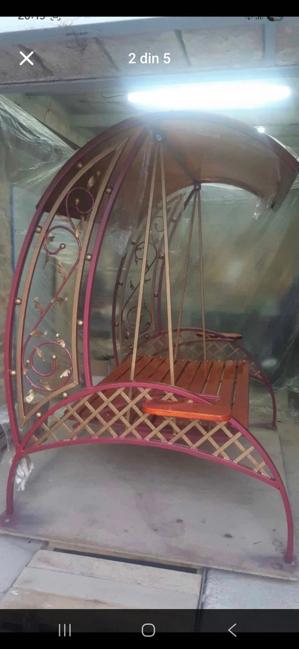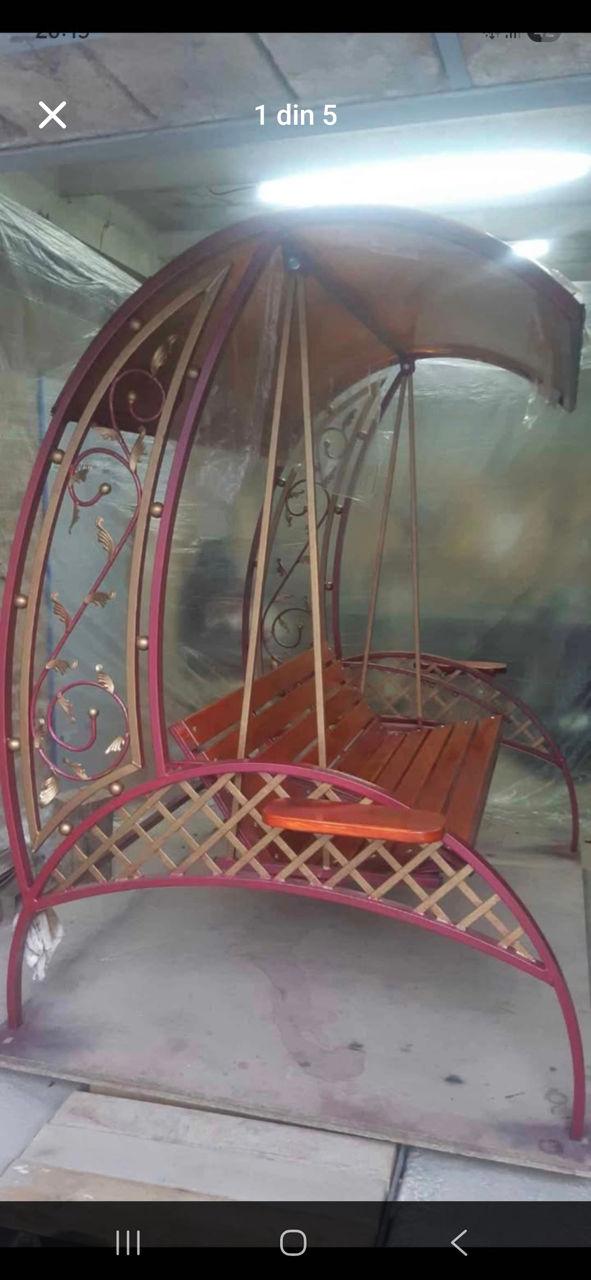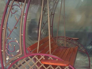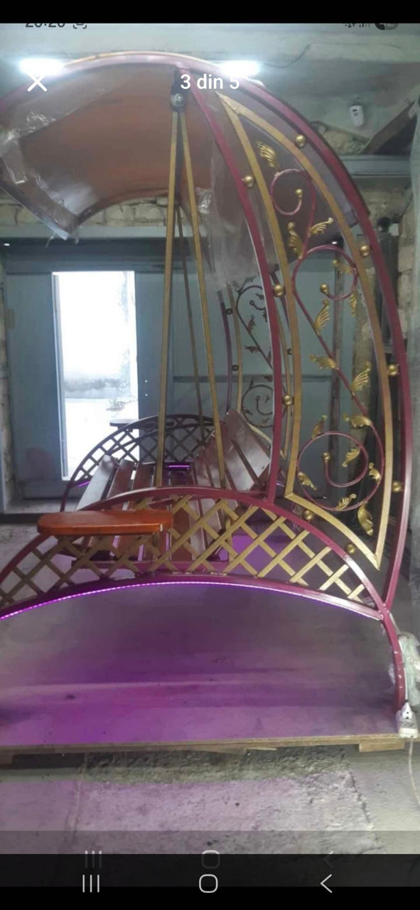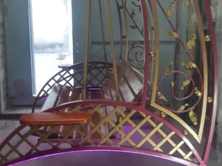 Spre vinzare leagan din fier forjat ,menit să reducă stresul și să ofere un spațiu de odihnă în aer liber... Scaunul are mai multe poziții se face chiar si pat... În partea de jos sunt montate luminile LED și sunt ideale pentru a crea o atmosferă plăcută, relaxantă, oferind o iluminare cu efect de lux și transformă spațiul într-o oază de liniște. Pe lateral, sunt măsuțe utile pentru așezarea băuturilor (cafea, ceai), carților...