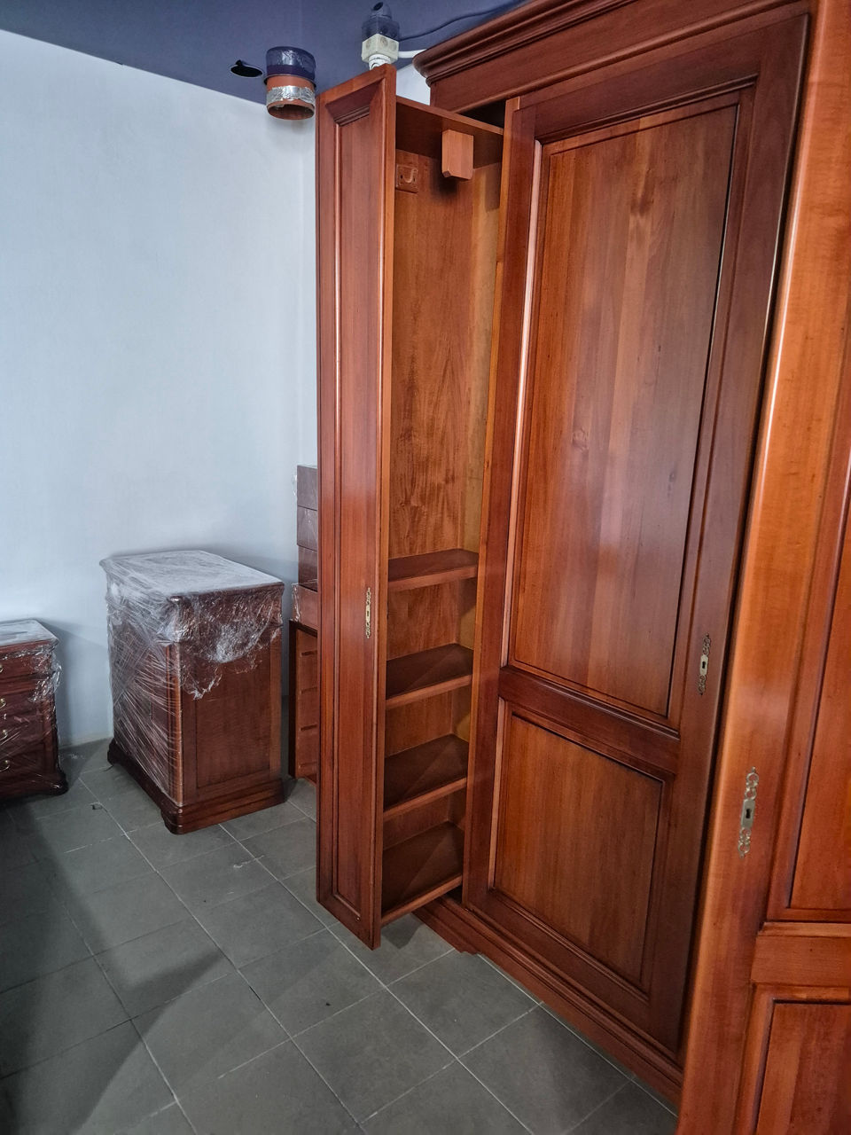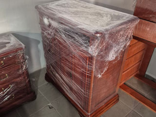 Dormitor cu tumbe si un skaf mare. Se vinde tot ce se vede pe foto. Scafu : 285/250/55 Patul: 200/180. Tumbele 50/35 Pentru mai multe detalii ma contactati la telefonul de mai jos. Staria e foarte buna..