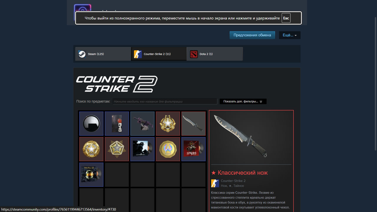 На Аккаунте есть нож в КС2 Pe cont este cutit pentru Counter-Strike 2 Profile -> https://steamcommunity.com/profiles/76561199446713564/