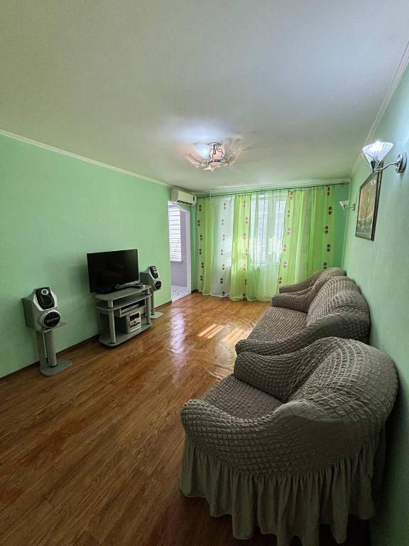 Apartament cu trei camere în regim de închiriere pe noapte, la prețul unui apartament cu o cameră. Centru orașului Tiraspol. Se deschide o priveliște minunată asupra orașului, pieței centrale și catedralelor din Tiraspol! Stația de autobuz este la 3 minute, internet WI-FI de mare viteză. O ședere confortabilă, o dispoziție bună și amintiri plăcute vă sunt asigurate prin cazarea în apartament. Apartament spațios cu trei camere și 2 balcoane: dormitor cu pat matrimonial mare, living cu canapea confortabilă și cameră pentru copii cu o sofă comodă, baie spațioasă cu cadă. Aer condiționat, uscător de păr; frigider, mașină de spălat automată, cuptor cu microunde, TV și decodor, precum și lenjerie de pat cu saltea ortopedică, întotdeauna lenjerie proaspătă, prosoape moi, fier de călcat, masă de călcat, veselă etc. Curat, confortabil, confidențial. Apartamentul are toate condițiile pentru un timp plăcut petrecut. Confortul dumneavoastră este grija noastră. Vom fi bucuroși să primim clienții vechi. Așteptăm clienți noi. Rugăm persoanele sub 21 de ani să nu deranjeze.