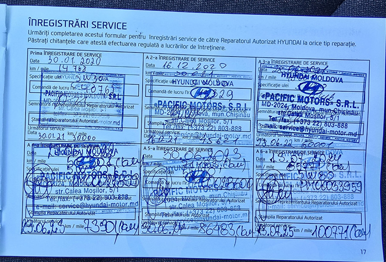 Carte service / Сервисная книжка: Hyundai Moldova (Pacific Motors)