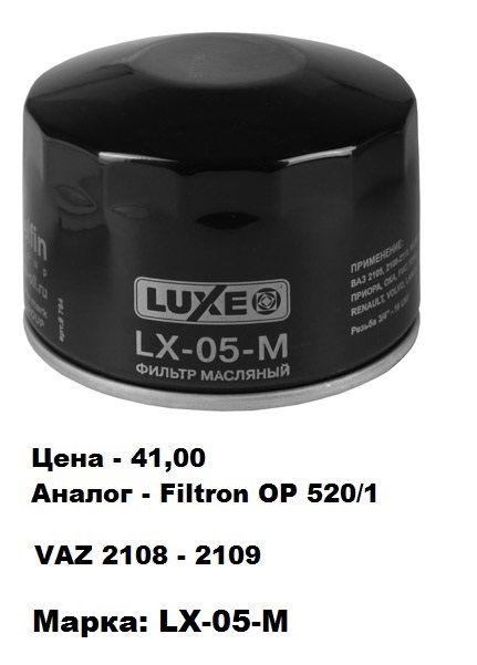 - Масляный фильтр LUXE LX-05-M (ВАЗ 2108 - 09) - 54,00 лей