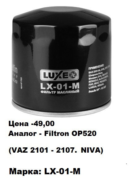 - Масляный фильтр LUXE LX-01-M (ВАЗ 2101-07, Нива) - 65,00 лей
