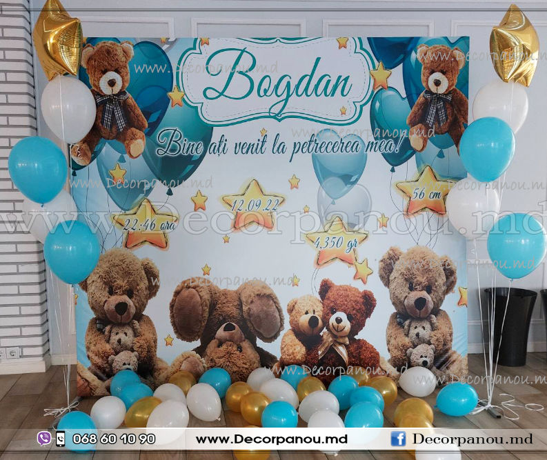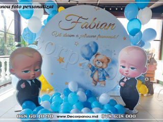 Pentru a avea o sarbatoare ca la carte e nevoie de multa sirguinta , emotii , decorpanou.md vine in ajutor in solutionarea unei din cele mai importante probleme - amenajarea fotozonei. Noi propunem panouri foto de orice marime si formate dupa gustul DVS. si tematica evenimentului. Nu aveti nici o grija doar dati comanda , discutati cu designerii decorpanou.md asupra machetei foto panou si de restul ne ocupam noi. Imprimam banerul calitativ sa nu se piarda nici o nuanta de culoare, inchiriem stativul mobil pentru baner cu montarea si demontarea sa ulterioara, deasemenea efectuam transportul in raza Chisinaului, dupa necesitate si inafara municipiului. Deasemenea oferim BALOANE pentru ceremonie la cele mai mici preturi , pentru decor complect. www.panoufoto.md pentru comoditatea a alcatuit citeva pachete standart : preturile la panou personalizate la noi difera doar de marime , nu conteaza imaginea ,ea se modifica la orice dimensiune in rest sunt incluse toate serviciile Decor Fotostand 1,2 x 2,0m - 750 lei +Cadou 20 baloane Decor Fotostand 1,5 x 2,0m - 850 lei +Cadou 20 baloane Decor Fotostand 2.0 x 2.0m -950 lei +Cadou 30 baloane Decor Fotostand 2.2 x 2.2m -1050 lei +Cadou 30 baloane Decor Fotopanou 2.3 x 2.3m -1100 lei +Cadou 30 baloane Decor Fotopanou 2.0 x 2.5m -1100 lei +Cadou 30 baloane Decor Fotopanou 2.2 x 2.5m -1150 lei+Cadou 30 baloane Decor Fotopanou 2.0 x 3.0m -1150 lei+Cadou 30 baloane Decor Fotostand 2.3 x 2.6m -1200 lei+Cadou 30 baloane Decor Fotostand Cerc 2,3m - 1250 lei+Cadou 40 baloane Decor Fotostand 2.2 x 3.0m -1300 lei+Cadou 40 baloane Decor Fotostand 2.4x 3.0m - 1400 lei+Cadou 50 baloane Decor Fotostand 2.5 x 3.5m -1600 lei+Cadou 60 baloane Decor Fotostand 2.5 x 4.0m -1750 lei+Cadou 70 baloane In pret este inclus: (design cum doriti dvs-tipar pe pinza-inchiriere carcasa mobila-montare-demontare-tranportare in raza Chisinaului Tel: 068601090 Adresa : Stefan cel Mare 145. https://www.facebook.com/decorpanou.md/
