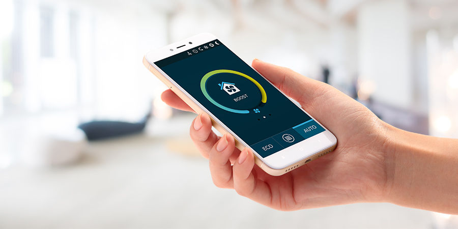 Instalatia DOMEKT R este dotata cu motor EC, care ecnomiseste considerabil energia si asigura o miscare lenta a schimbatorului de caldura.