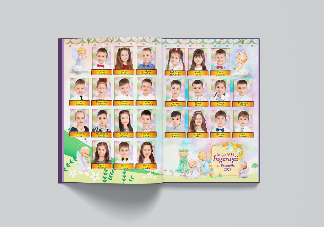 Timpul trece, se asterne uitarea peste anii de gradinita, dar albumul de promotie iti va permite sa pastrezi vie amintirea colegilor si primei educatoare!