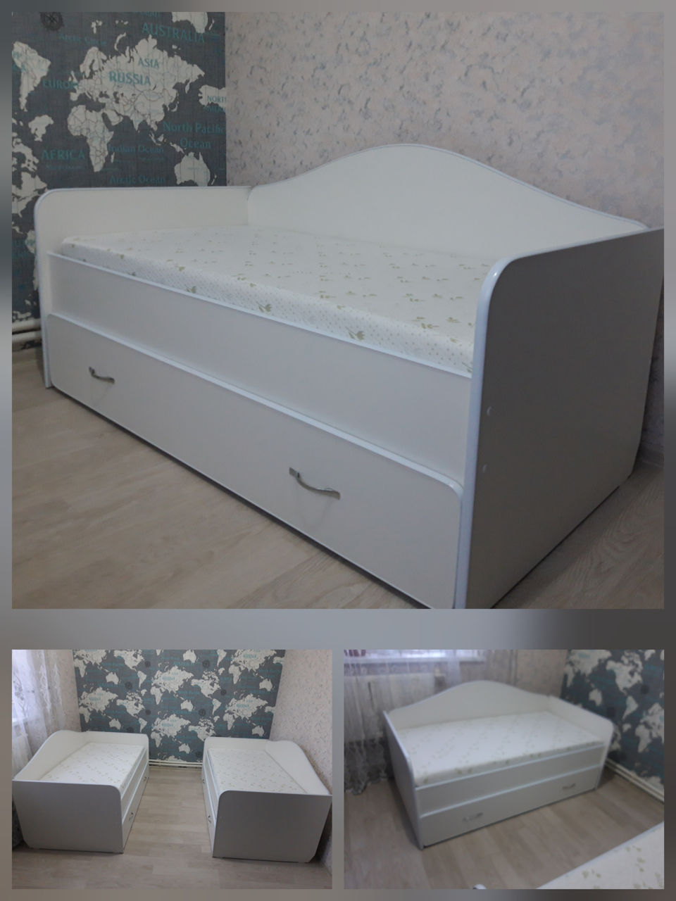Pat confortabil și compact realizat din PAL L Puteți alege orice culoare .. Puteți aplica un model de orice culoare și orice formă. Zona de dormit 160х80 cm, dimensiunea totală 164х86. Pretul este indicat fara saltea