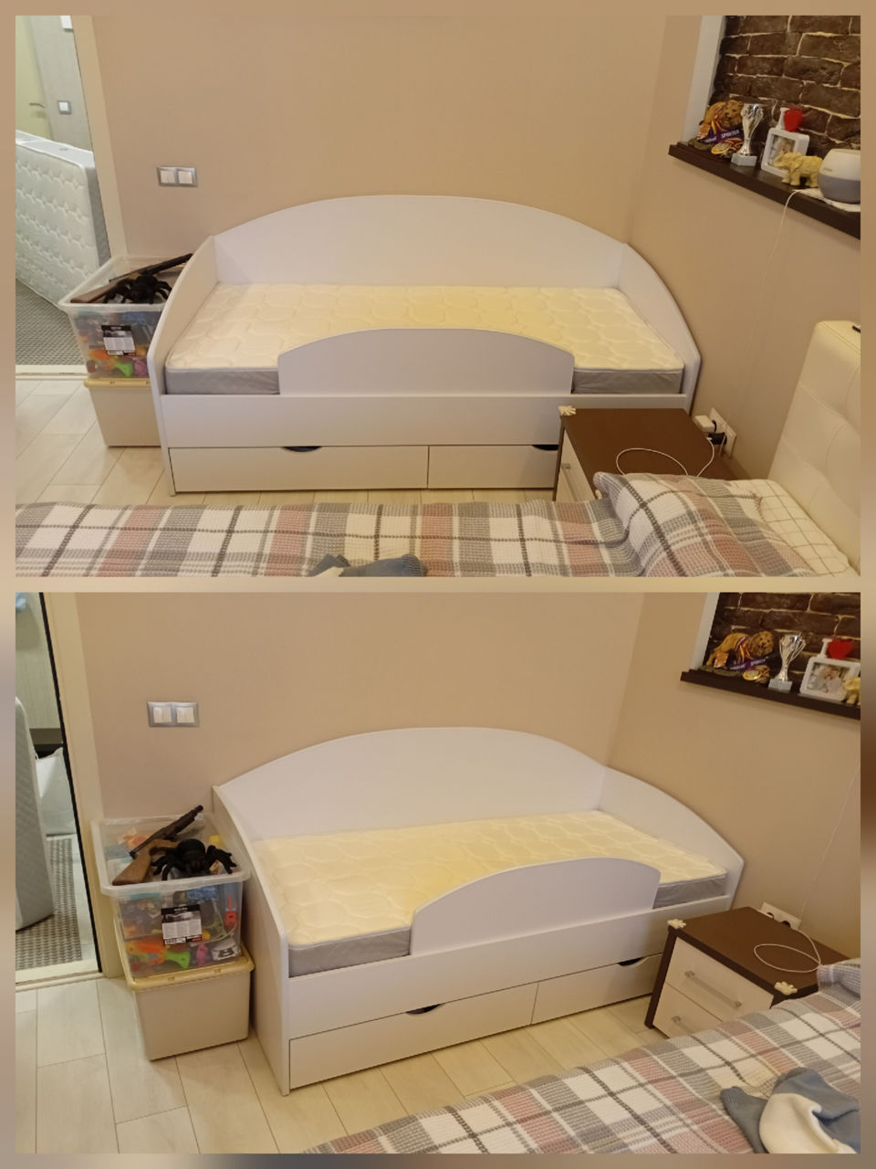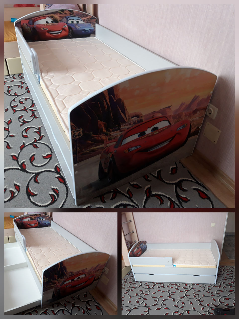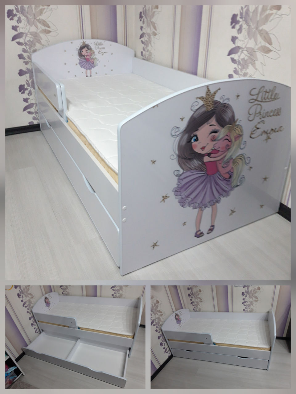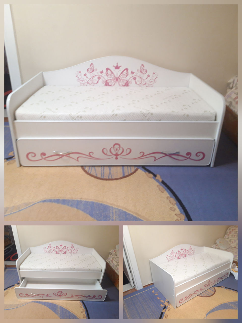 Удобная и компактная кровать изготовлена из материала Л ДСП.. цвет можно выбрать любой. Можно нанести узор любого цвета и любой формы. Размер спального места 160х80 см, общий размер 164х86. Цена указана без матраса