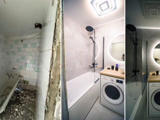 Alexandr a realizat renovarea completă a băii. Suntem mulțumiți de rezultat. Termenul și costul convenite au fost respectate. O persoană foarte plăcută! A acceptat și a corectat toate observațiile. Ne-a oferit multe sfaturi pe parcursul lucrării. A reparat și ajustat diverse detalii prin apartament. Are mâini de aur. Orice dorință – contra cost! Îl recomandăm!