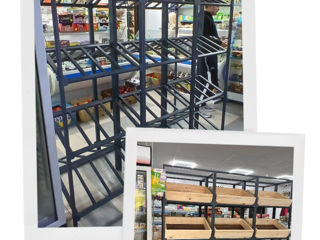 Любую металло констукцию.Стеллажи разборные.плюс в том что их не надо варить у вас сваркой.толька сборка.одна полка выдерживает 300кг.и более.полки из осб дсп фанера финская фанера.