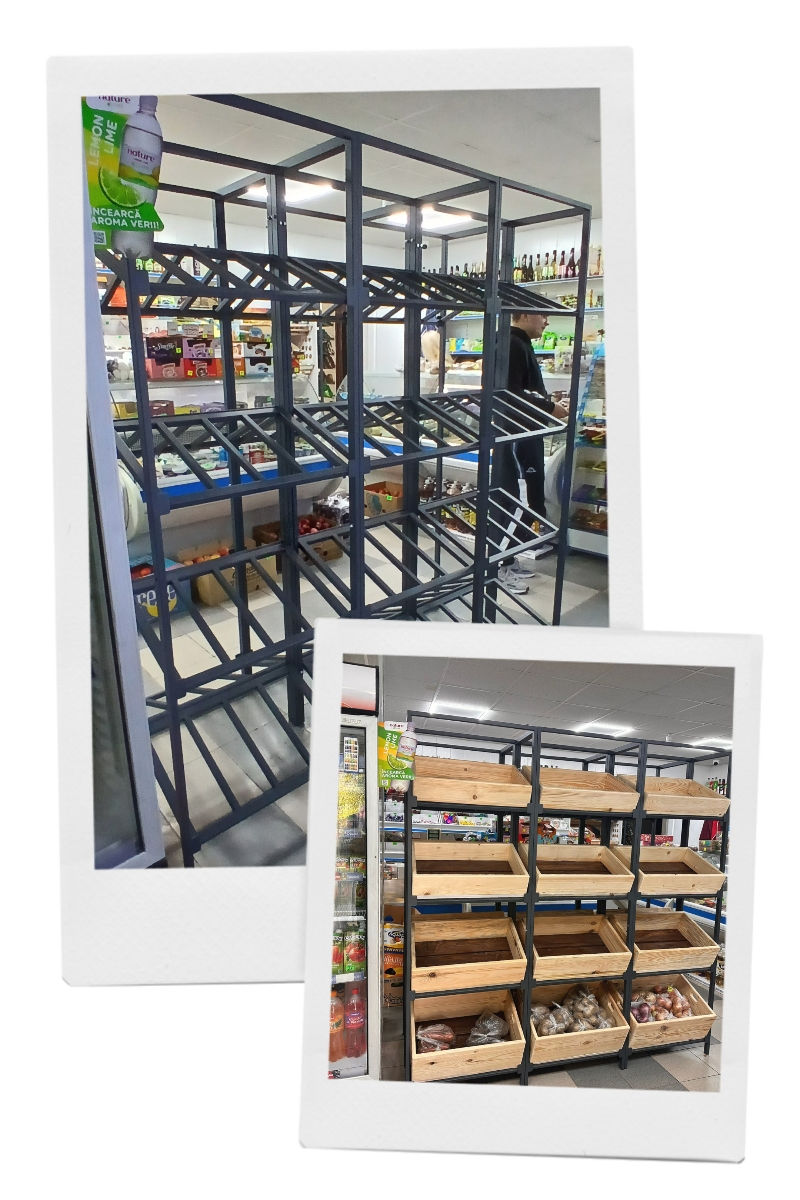 Стеллажи для овощей и фруктов.