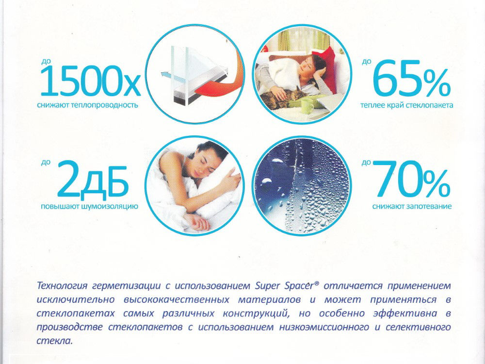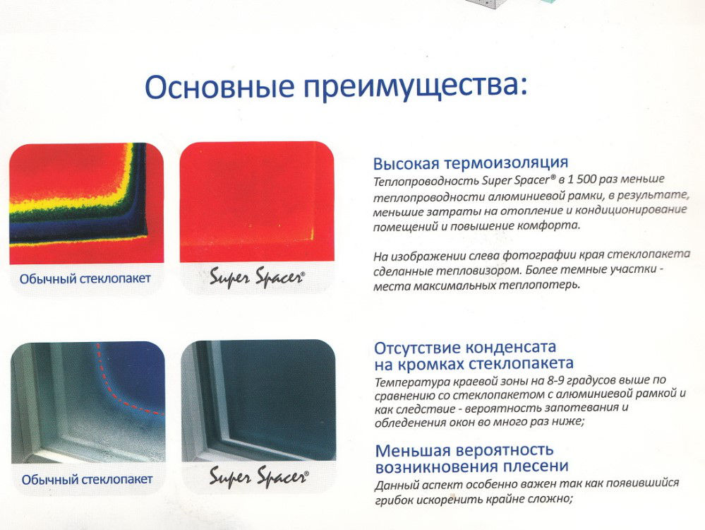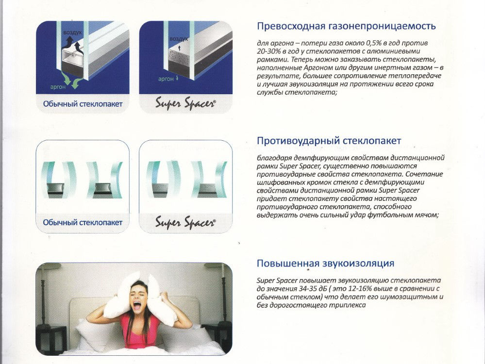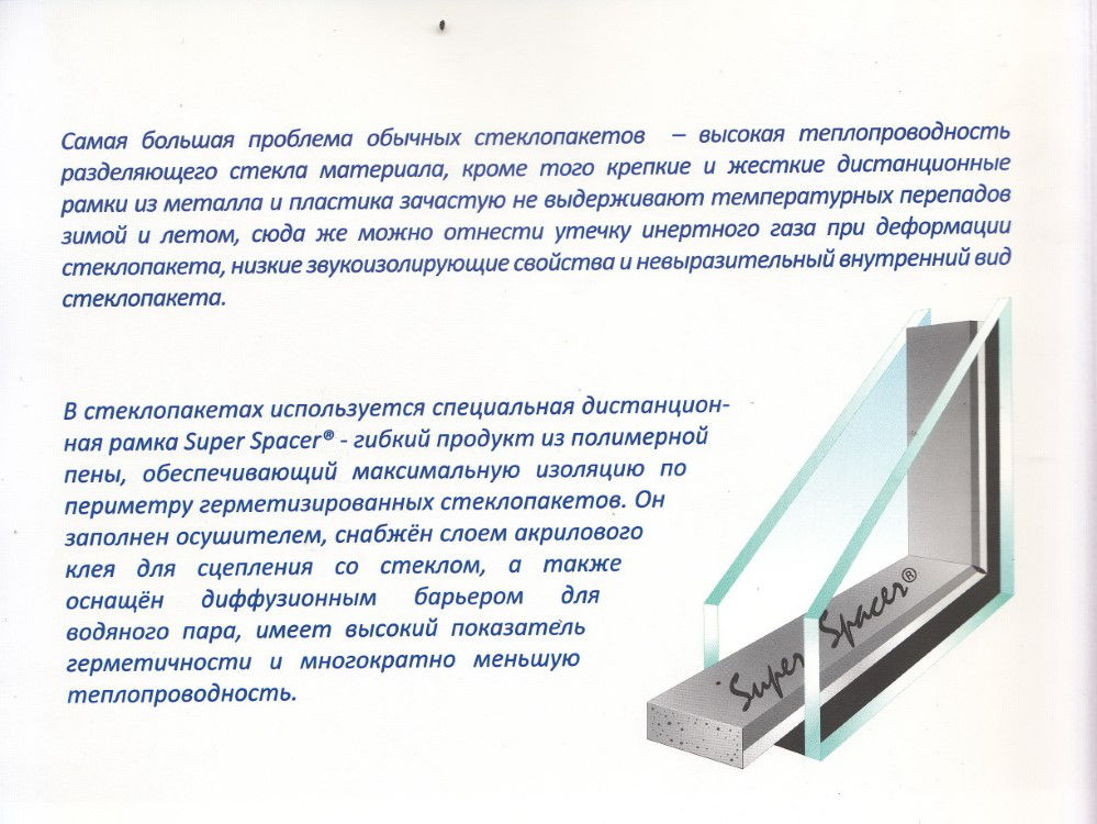 Также для увеличения эффективности стёкол в пространство между ними закачивают газ аргон и устанавливают ТЁПЛУЮ дистанционную багету (спейсер, Термикс).