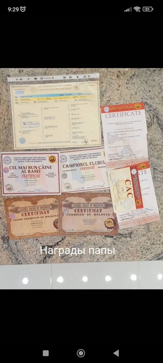 .Родители состоят в КЛУБЕ имеютРОДОСЛОВНУЮ.Дедушка Чемпион МОЛДОВЫ.Последние фото дедушка из Италии