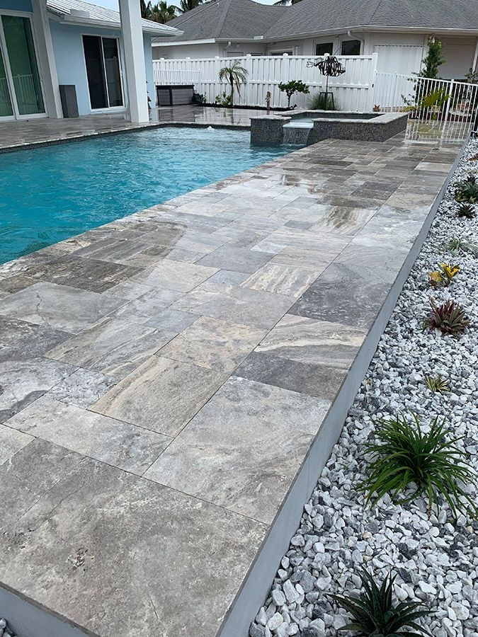 Travertin este perfect pentru zona piscinei, zona barbeque si terasa.