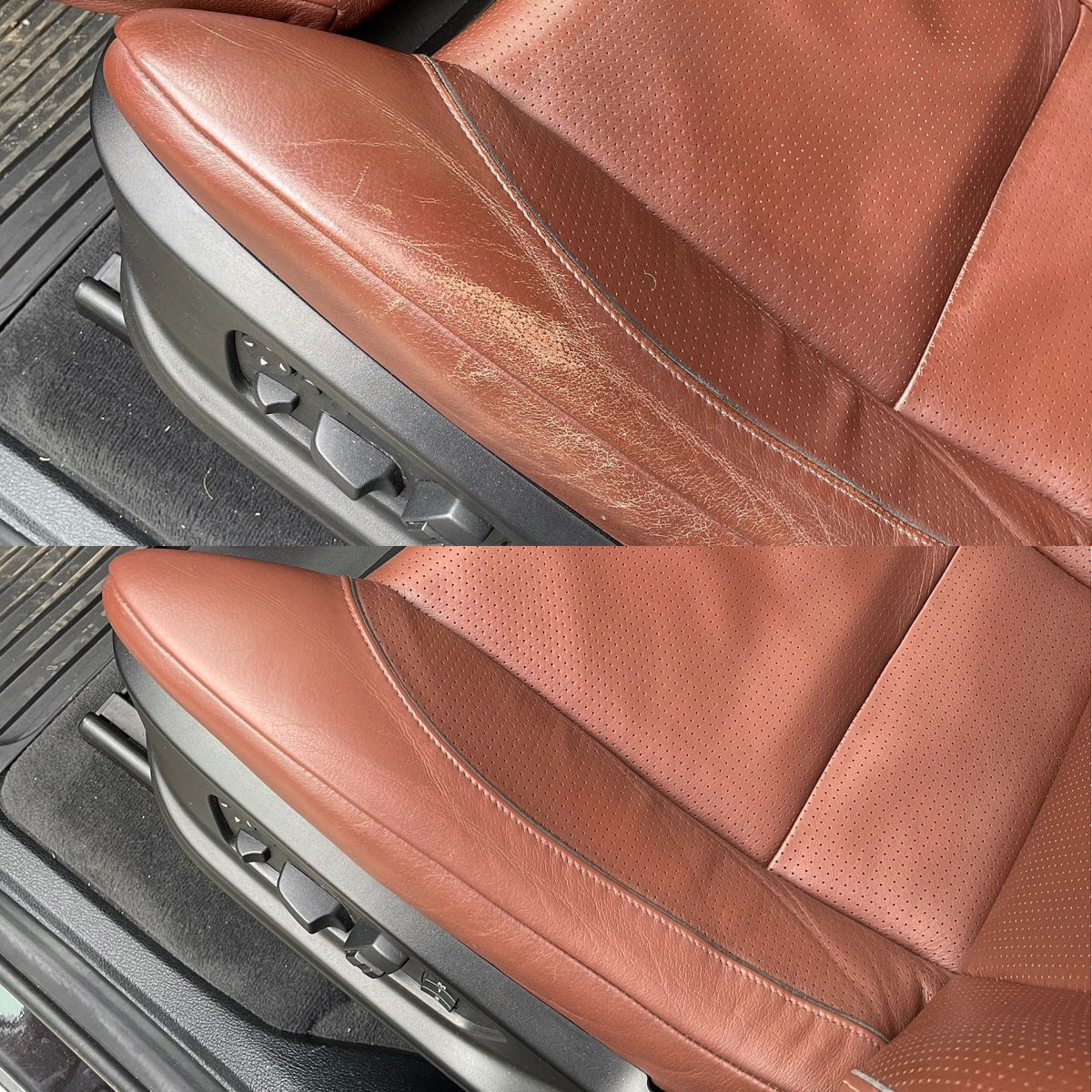 restaurare piele реставрация кожи Oferim servicii revopsire Piele (scaune, volane) Piele artificială Plastic, plastic soft touch Vinil restaurare piele Reparare rupturi in piele Curățire și protejare piele Покраска руля покраска кожи , Покраска пластика покраска сидений из кожи покраска кожаных сидений Durabilitatea vopselei pentru elementele ce intra in contact cu corpul uman (ex. scaun, volan, cotiera, maner ) depinde in primul rand de grija avuta pentru mentinerea interiorului in stare cat mai buna, cum se urca in auto, cum se freaca hainele pe scaun etc.. In ceea ce priveste volanul, vopseaua poate rezista intacta ani de zile, dar uzura poate sa inceapa si dupa cateva luni . lata cativa factori ce dauneaza vopselei de pe pielea volanului atat inainte de vopsire cat si dupa : * transpiratia acida din palma fiecarui individ * purtarea de inele, bratari, ceasuri * caseta de directie prea stransa (se trage mai greu de volan] * folosirea de gel antibacterian sau dezinfectant ( concentratie mare de alcool ce ataca vopseaua) * folosirea de servetele umede cu alcool sau a altor solutii foarte puternice menite sa curete pielea * stergerea la spalatorie cu o carpa imbibata cu o solutie de care nu stim mai nimic * virajul total pe loc cu podul palmei. Химчистка салона/curățare chimică auto