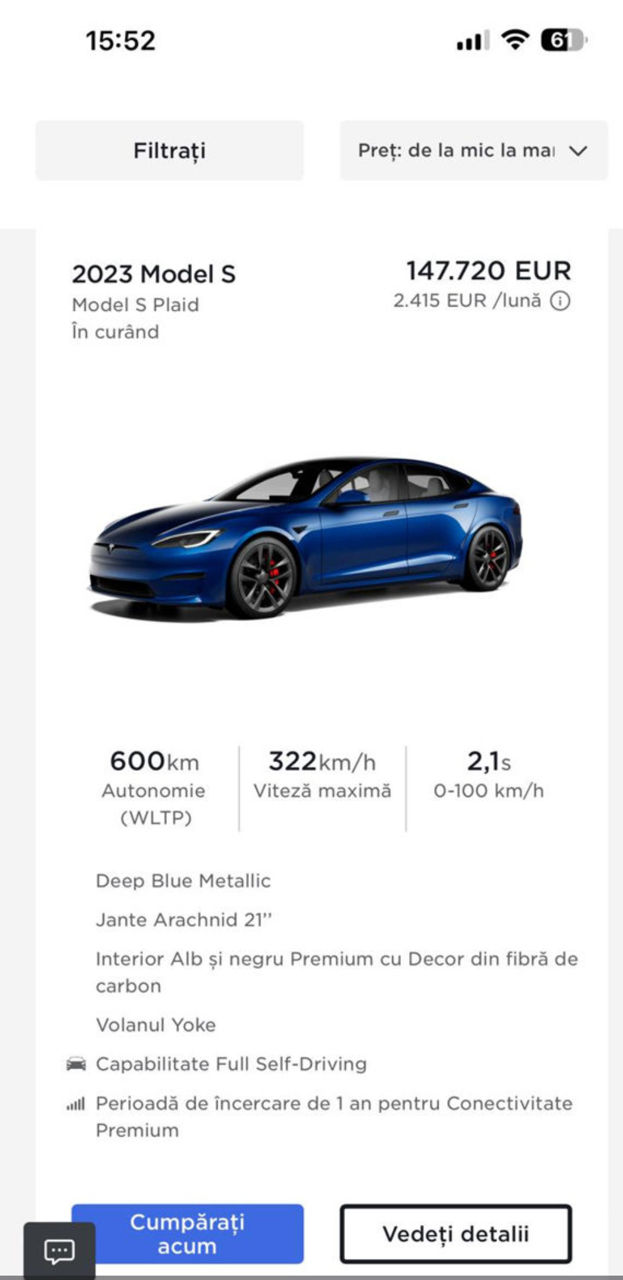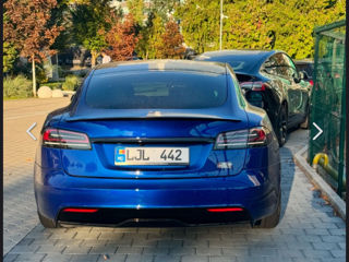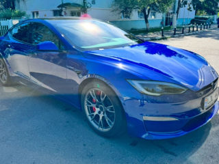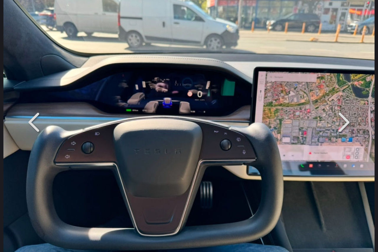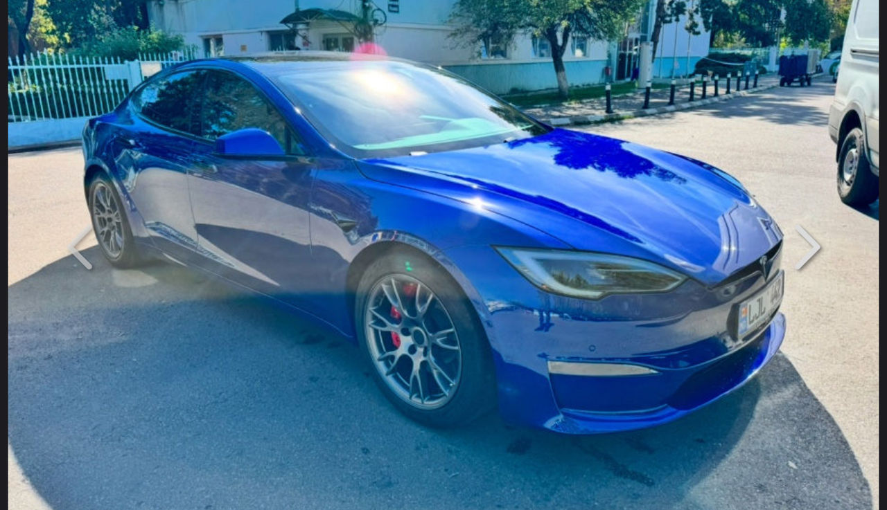 Tesla Model S Plaid 1020 лошадиных сил, 4x4, полностью автономное управление, бежевая кожа, цвет синий металлик, аккумулятор 120 кВт, при полной зарядке можно проехать 640 км, можно воспользоваться бесплатной станцией Supercharger (сверхбыстрая зарядка по всей Европе без ограничений), рулевое колесо Yoke и, дисплей с играми сзади, , 5 подогреваемых сидений, 4 вентилируемых сиденья, беспроводная зарядка сзади и спереди, камеры 360, активирована система smart summom