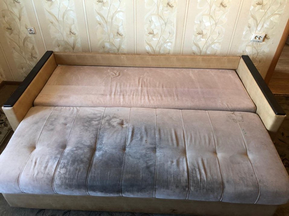 Посмотрите на фото и оцените разницу между чистым и необработанным диваном.