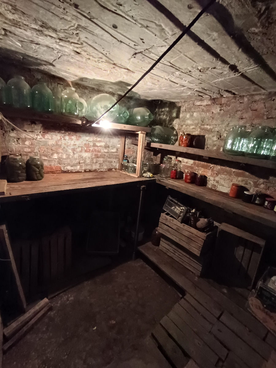 сарай с сухим и просторным подвалом — идеальное место для хранения заготовок, инструментов или обустройства мастерской.