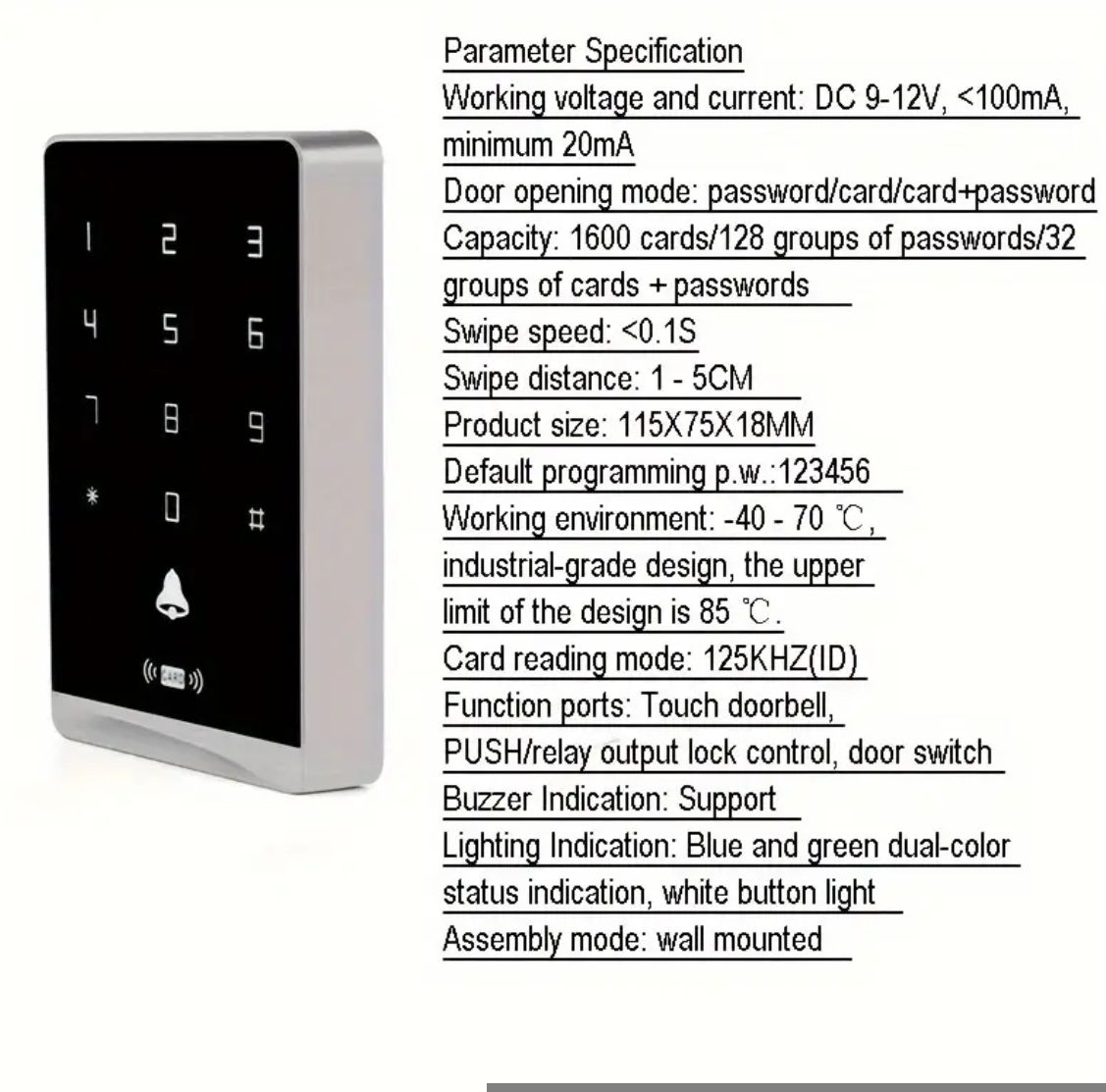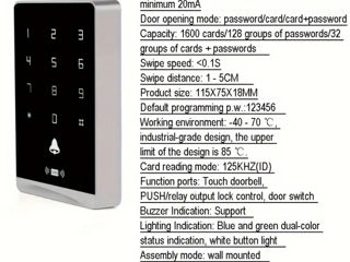 Domafon,Електроный дверной замок KaisoTech контроль доступа к двери:ID Card,Cip ключи и Пароль,1600 пользователей Отдельно есть и електрический замок на 12 вольт 250Л.