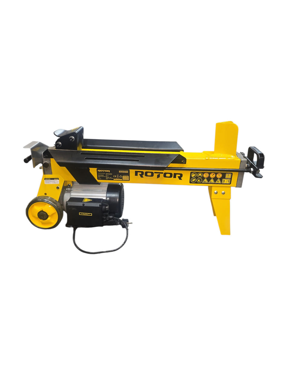 Despicator de lemne electric, hidraulic, orizontal, marca Rotor Model 65558 fabricat la standarde inalte, cu structura scheletica rezistenta si motor foarte puternic – 2200 W ce exercita o forta de presiune de 7 tone. Limitele de dimensiuni ale busteanului despicat se incadreaza in 52 cm lungime si 25 cm grosime. Presiunea hidraulica maxima atinge 20.6 Mpa, iar rezervorul de ulei hidraulic, fara de care busteanul nu poate fi despicat, are un volum de 3.5L. Masina poate fi conectata la o priza obisnuita de 230V.