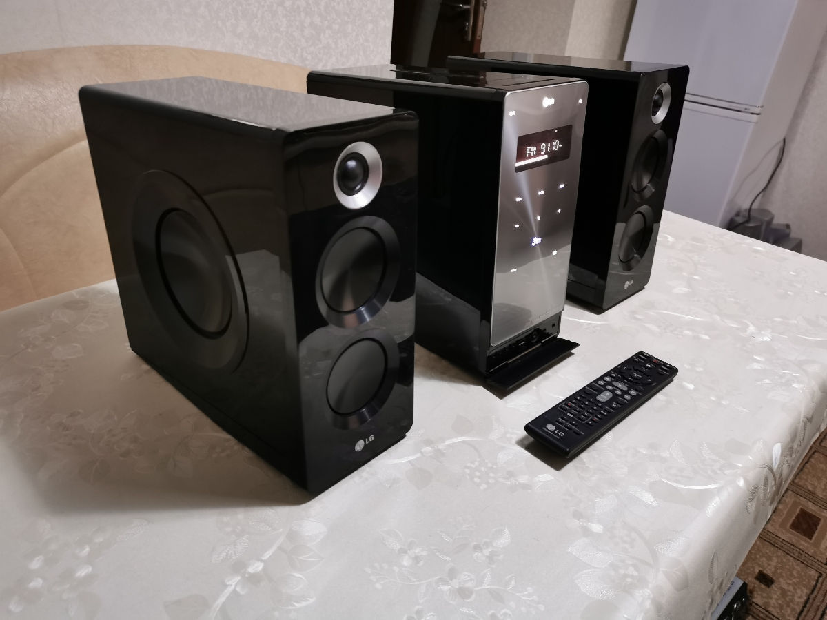 LG FB-166 HiFi стерео система. Шикарный аппарат с сенсорной панелью управления, пультом ДУ, с USB портом. Всё в идеале, всё работает!! Аппарат звучит супер мощный и объемный бас, не нужен никакой саб! Имеет функцию записи с CD на USB + вход для iPod и HDMI.