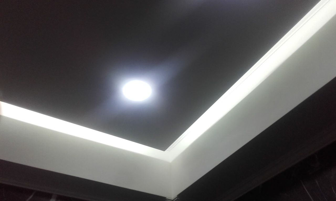 потолки карнизные (на разных уровнях) с подсветкой,