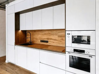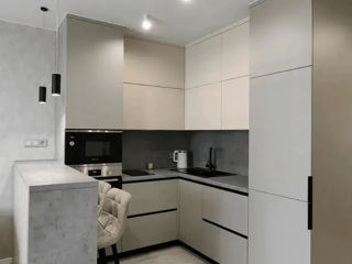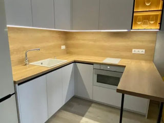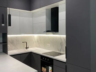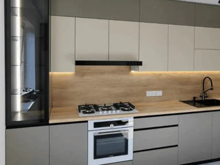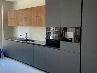 С фасадами из AGT (МДФ с пластиком ) цены начинаются от 8700 лей за метр погонный (верх + низ)
