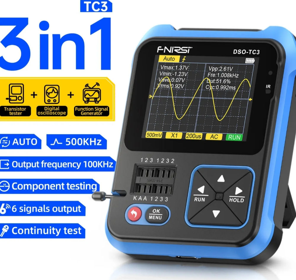 ESR metru Osciloscop 500kHz și Generator de semnale 3 in 1împreună. Osciloscop cu 2 canale 2*10MHz cu multimetru digital.