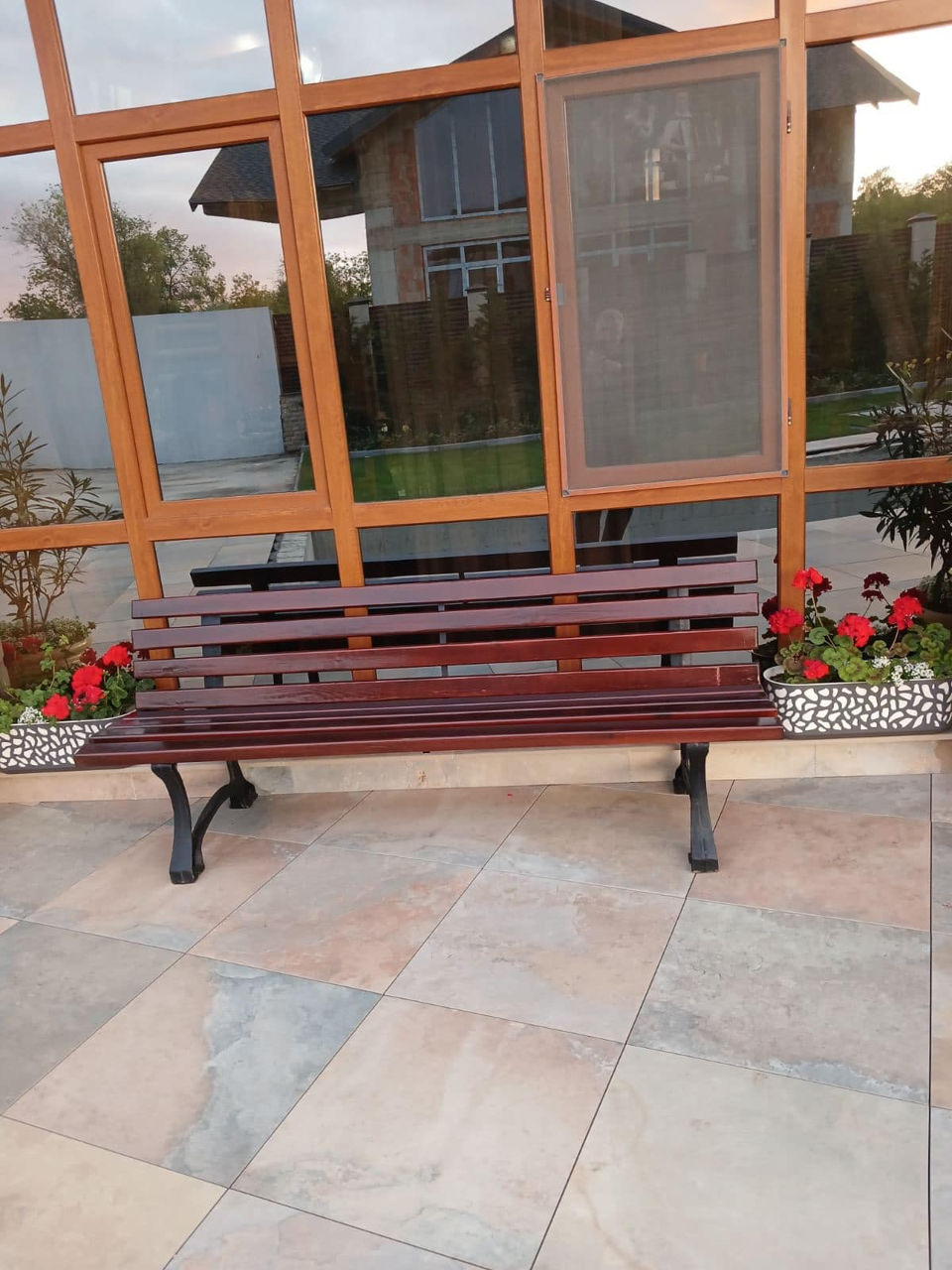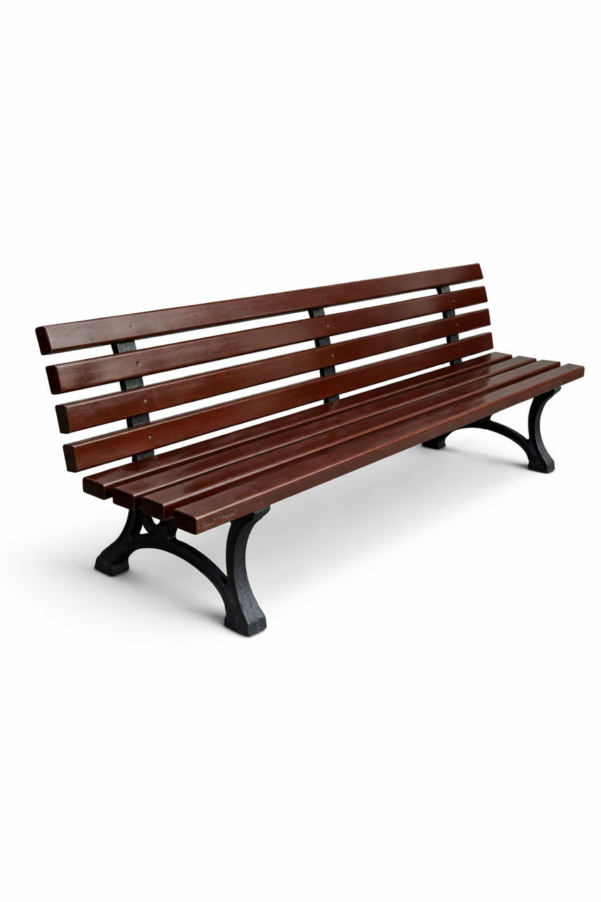 Banca din fontă este realizată din fontă de înaltă calitate, echipată cu bare de lemn din lemn de conifere și acoperită cu lac și impregnări de înaltă calitate.